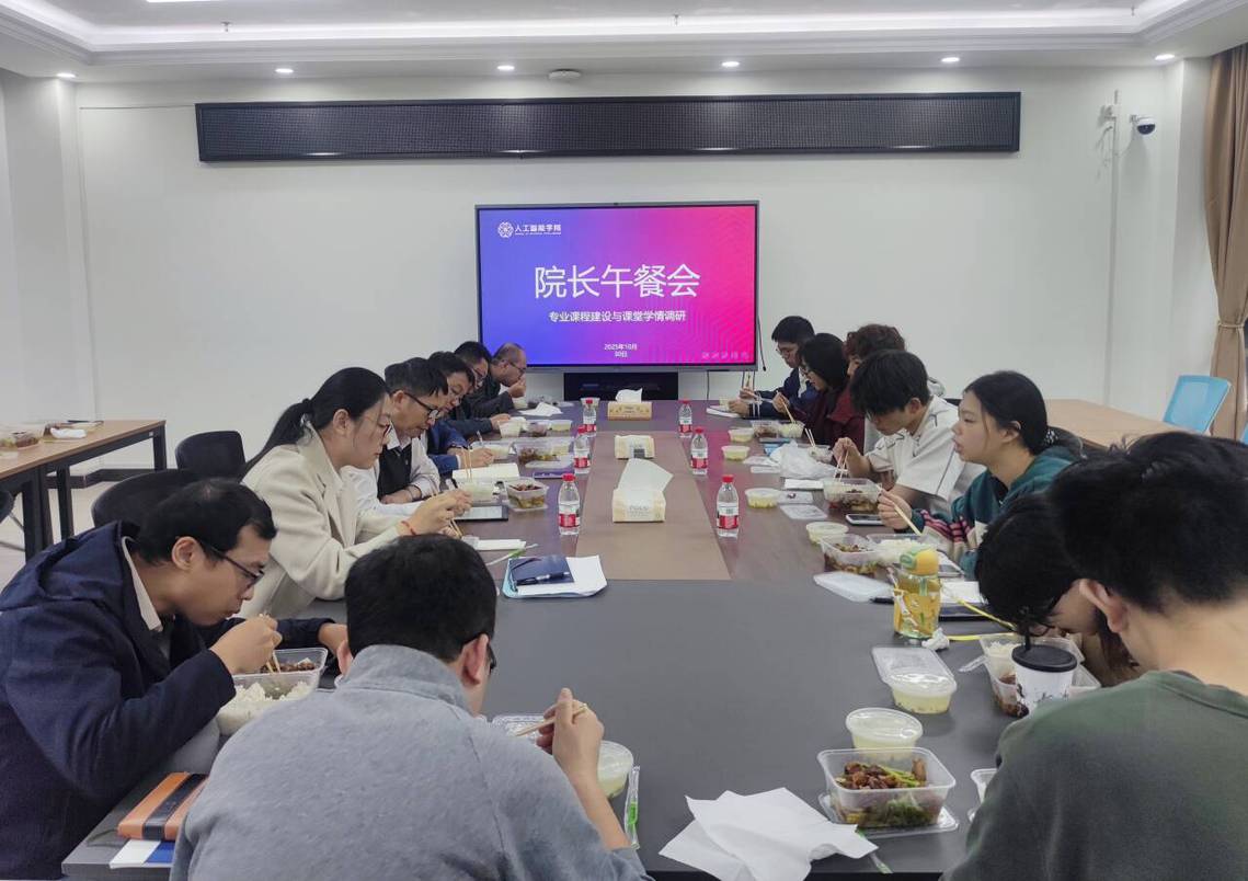 10月30日,人工智能学院召开“专业课程建设与课堂学情调研”主题院长午餐会,学院领导班子成员、系主任、教师代表与2023级各专业学生代表参加。