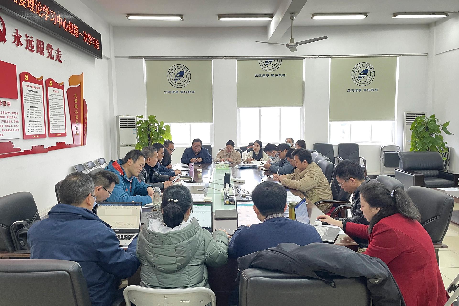 近日,计算机与信息安全学院党委理论学习中心组在花江校区第五教学楼503会议室召开2022年度第一次学习会,会议由学院党委书记文辉主持,学院党委委员、纪检委员以及各支部书记参加学习。