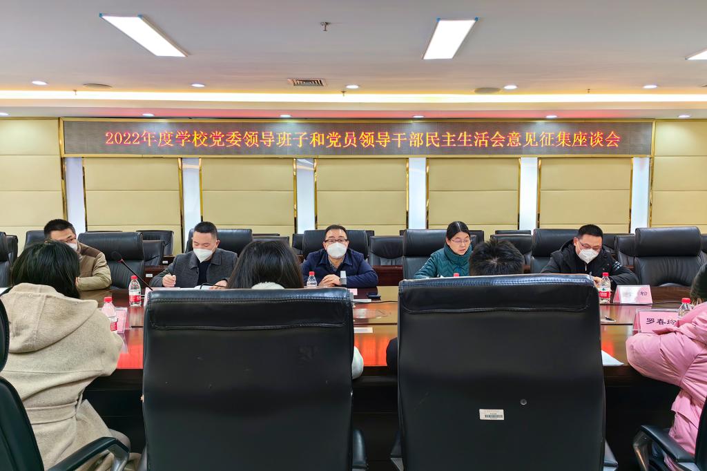 为高质量开好2022年度学校党委领导班子和党员领导干部民主生活会,1月4日至8日,学校党委先后召开五场征求意见座谈会,分别听取中层领导干部代表、教师代表、党外人士代表、学生代表、离退休人员代表关于开好2022年度学校党委领导班子和党员领导干部民主生活会的意见建议。校领导唐平秋、徐华蕊、陈贵英、聂慧、钟平、周娅、潘开林分别出席座谈会。