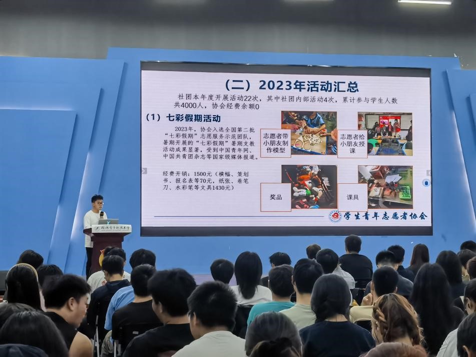答辩会上,学生书画爱好者协会、学生英语协会、学生青年志愿者协会、学生蓝焰消防协会、学生实践协会、学生退役大学生之家等14个学生社团围绕2023年度社团运营情况、特色活动开展情况等方面进行了分享交流,并针对2024年工作计划和经费预算进行了答辩。