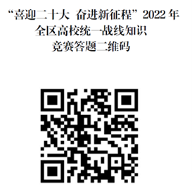 本次比赛为线上比赛。仅支持微信手机端登录进行,扫描“喜迎二十大 奋进新征程”2022年全区高校统一战线知识竞赛二维码,正确填写姓名、手机号码、学校等相关信息,进行答题。