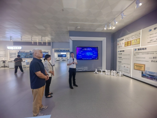 调研组一行先后参观了人工智能展厅和桂林电子科技大学政府数字传播与文化软实力研究中心。详细了解学校在人工智能、大数据、智能制造、舆情智能分析等领域的创新实践。