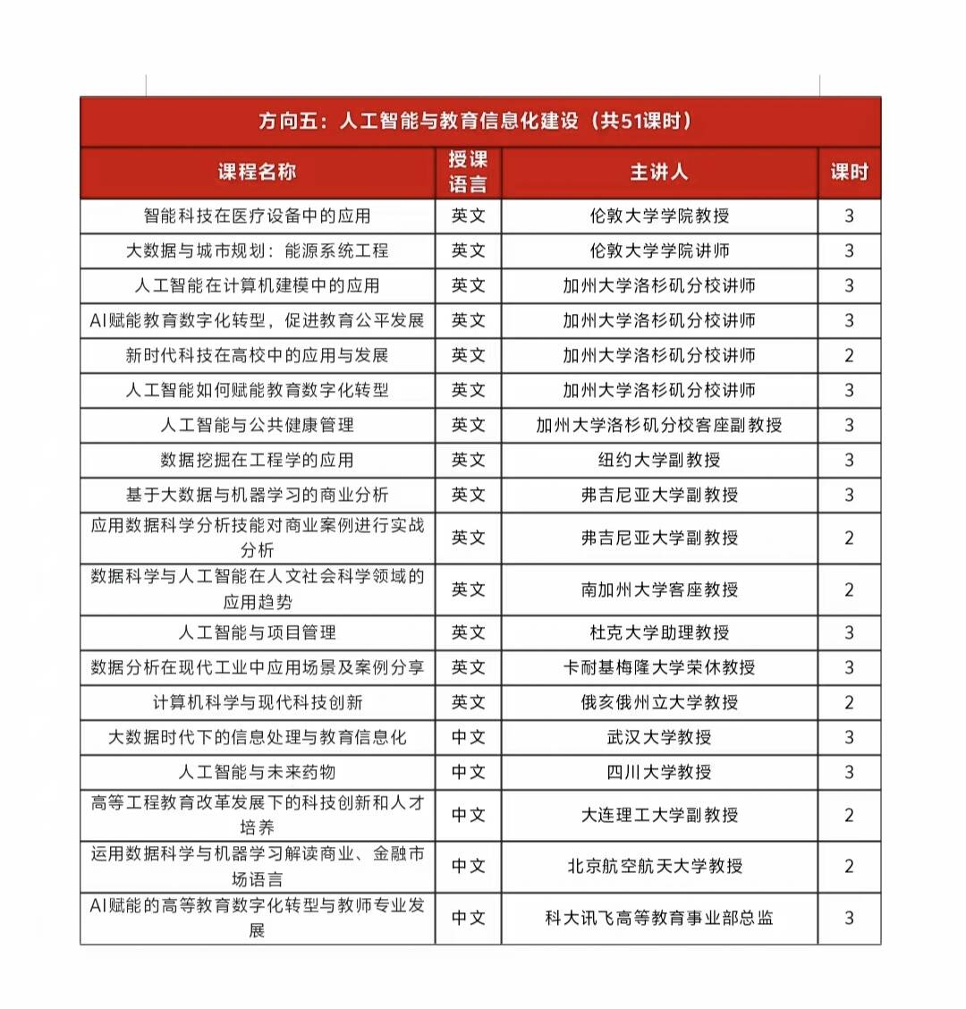 为提升教师的人工智能与教育信息化水平,我校与教育部中外人文交流中心“高层次国际化人才培养创新实践项目”对接,于2025年9月—11月举办一期线上培训,课程名称为“人工智能与教育信息化建设”,具体内容见附件。