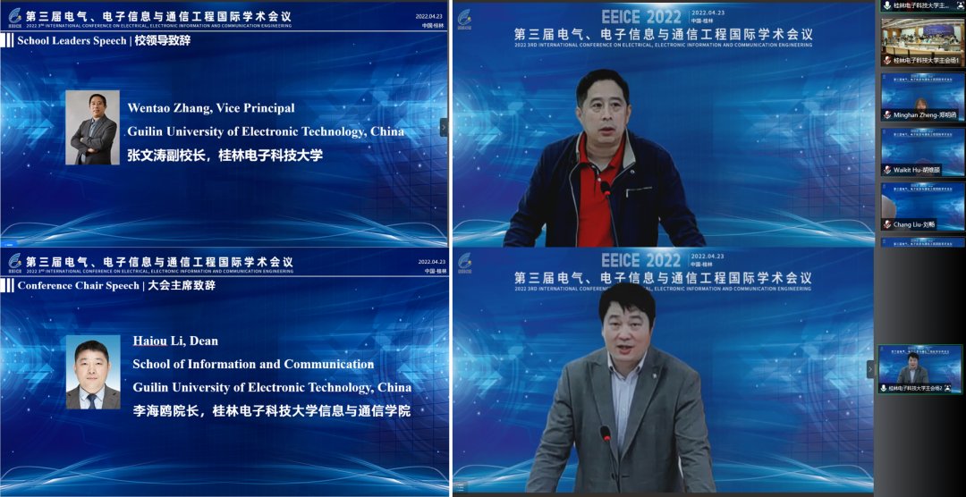 423日,第三届电气、电子信息与通信工程国际学术会议 (EEICE 2022)通过线上+线下(桂林电子科技大学分会场)相结合的形式隆重召开!本次会议由桂林电子科技大学和天津大学主办,桂林电子科技大学信息与通信学院、AEIC学术交流中心承办。