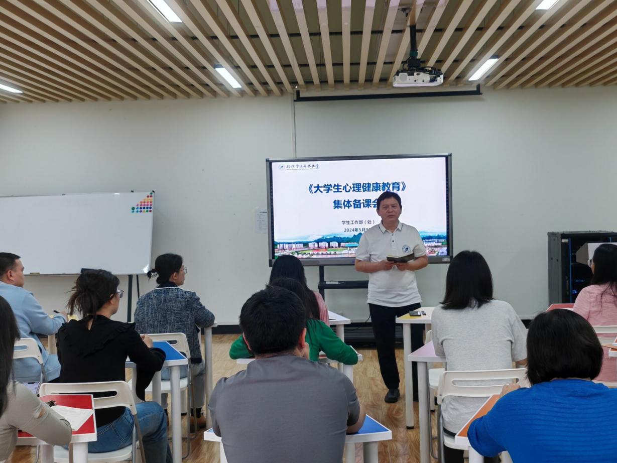 5月9日,学生工作部(处)在花江校区红亮学生活动中心220团体辅导室举行了本学期《大学生心理健康教育》第二次集体备课会。学生工作部(处)相关负责人、全体授课教师、心理健康教育中心专职教师参会。授课教师杨素真就教材中的《第五单元:心宽以和 善结人缘—人际关系》进行了示范教学,与会人员对教学内容、教学方法、重点难点等方面进行了深入研讨。