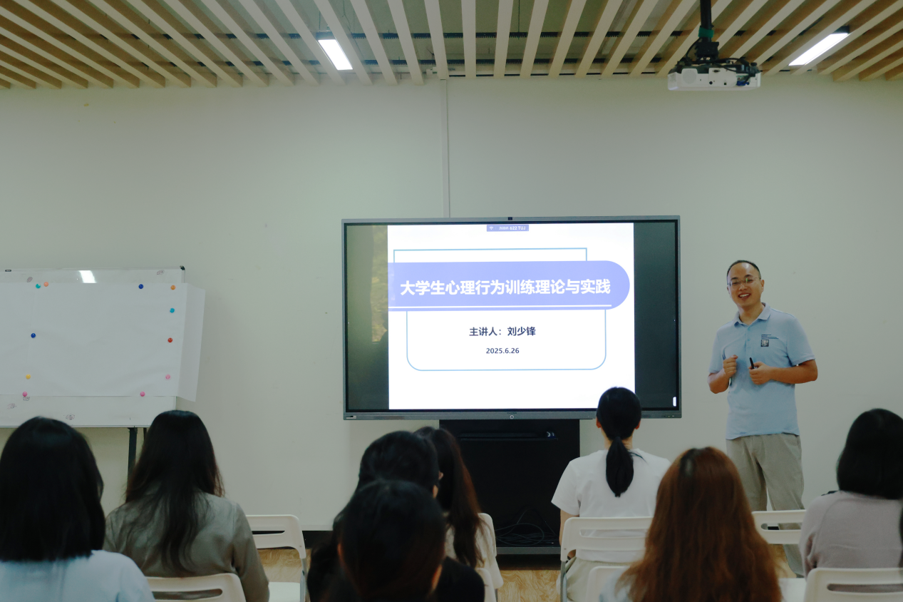 本次备课会聚焦课程实践环节——心理行为训练,特邀马克思主义学院刘少锋博士担任主讲。刘少锋博士围绕“大学生心理行为训练理论与实践”进行了专题培训,旨在提升教师开展该实践模块的教学能力。