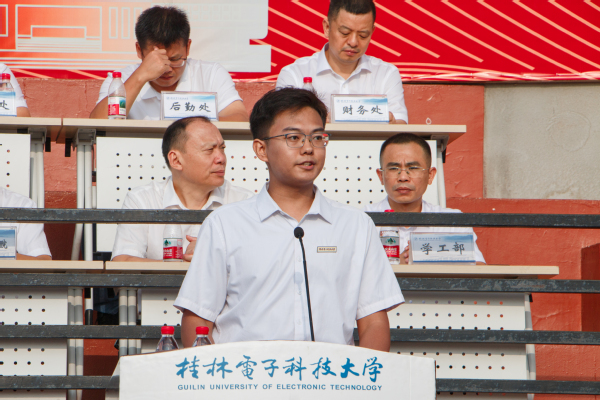 留学生新生代表,来自柬埔寨的2025级本科留学生陈有福表达了对中国传统文化的喜爱,对来桂电求学的期待。他表示,愿做中柬文化交流的使者,以青春之力,助力两国友好的桥梁更加坚固;愿与大家携手同行,认真学好专业知识,不畏困难、敢于尝试,团结协作、学会分享,读懂中国文化、讲好中国故事、传递国际友谊,让在桂电的日子过得充实又精彩。