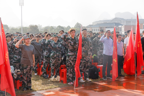 “山连着水,水连着山,我们从东西南北走过来,一个目标,一个理想......”开学典礼在全体师生齐声高唱桂电校歌中圆满礼成。