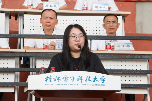 教师代表,信息与通信学院博士生导师,自治区优秀教师、八桂学者青年拔尖人才李晓欢教授分享了自己在桂电当学生、做老师的成长经历,勉励同学们要正德立心,养浩然之气,立报国之志;厚学求真,博观而约取,厚积而薄发;笃行致新,以青春之我,创青春之中国。