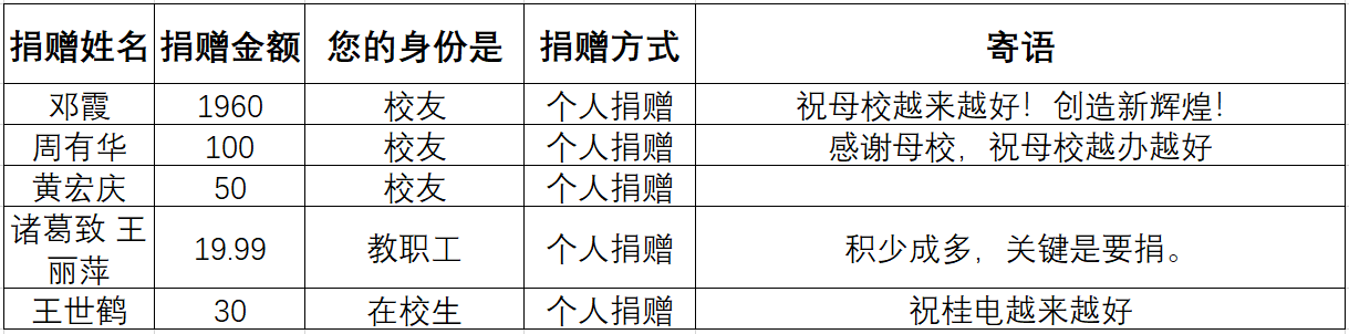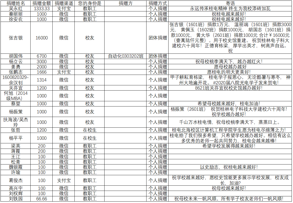截止2021年11月10日,校史编著专项基金项目共计收到2209.99元爱心捐赠(该汇总为桂电人平台导出数据数据汇总)。现将该项目明细公示如下:
