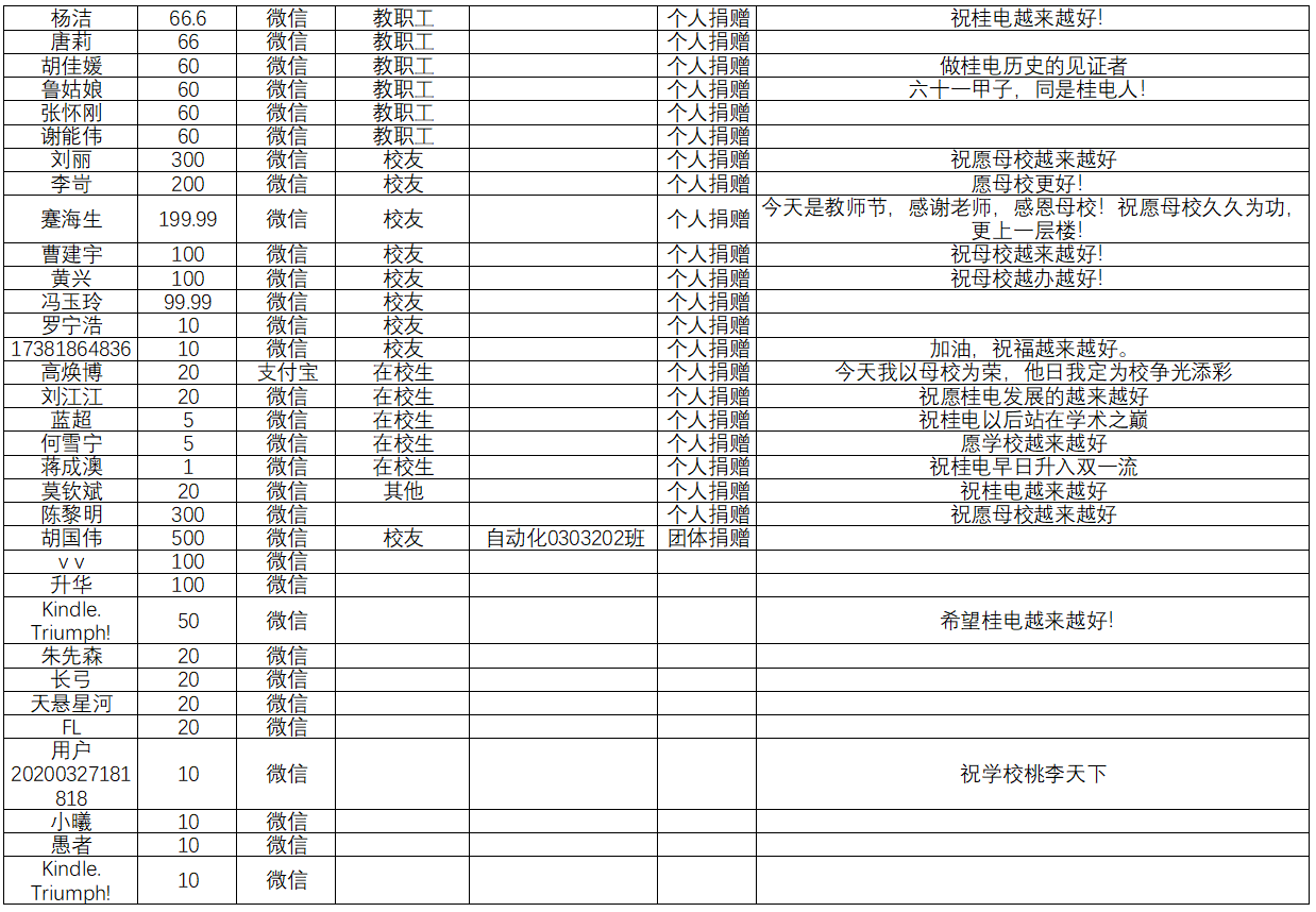 截止2021年11月10日,教师奖励基金捐赠项目共计收到45327.07元爱心捐赠(该汇总为桂电人平台导出数据数据汇总)。现将该项目明细公示如下: