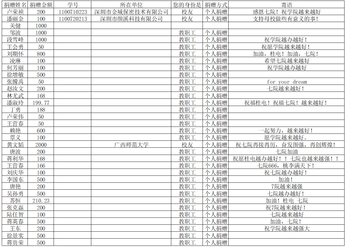 截止2021年11月10日,数学与计算科学学院校友基金—“爱基金”项目共计收到28968.54元爱心捐赠(该汇总为桂电人平台导出数据数据汇总)。现将该项目明细公示如下: