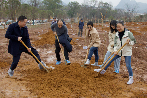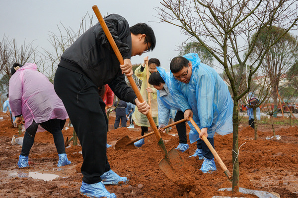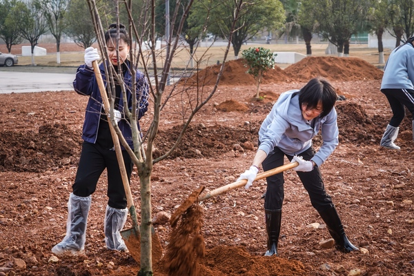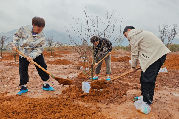春回大地万物苏,植树添绿正当时。3月12日—13日,我校以“共建绿色校园,争做生态先锋”为主题,组织开展义务植树活动。校领导唐平秋、张文涛、陈贵英、聂慧、梁启谈、陈松青,机关党委代表及全校各学院师生踊跃参与,在花江校区桂园、五期B地块等区域共同栽种秋枫、红枫、紫薇、碧桃、茶花、花石榴等500余棵绿植,以实际行动践行绿色发展理念,为校园增添新绿,共绘生态美好画卷。