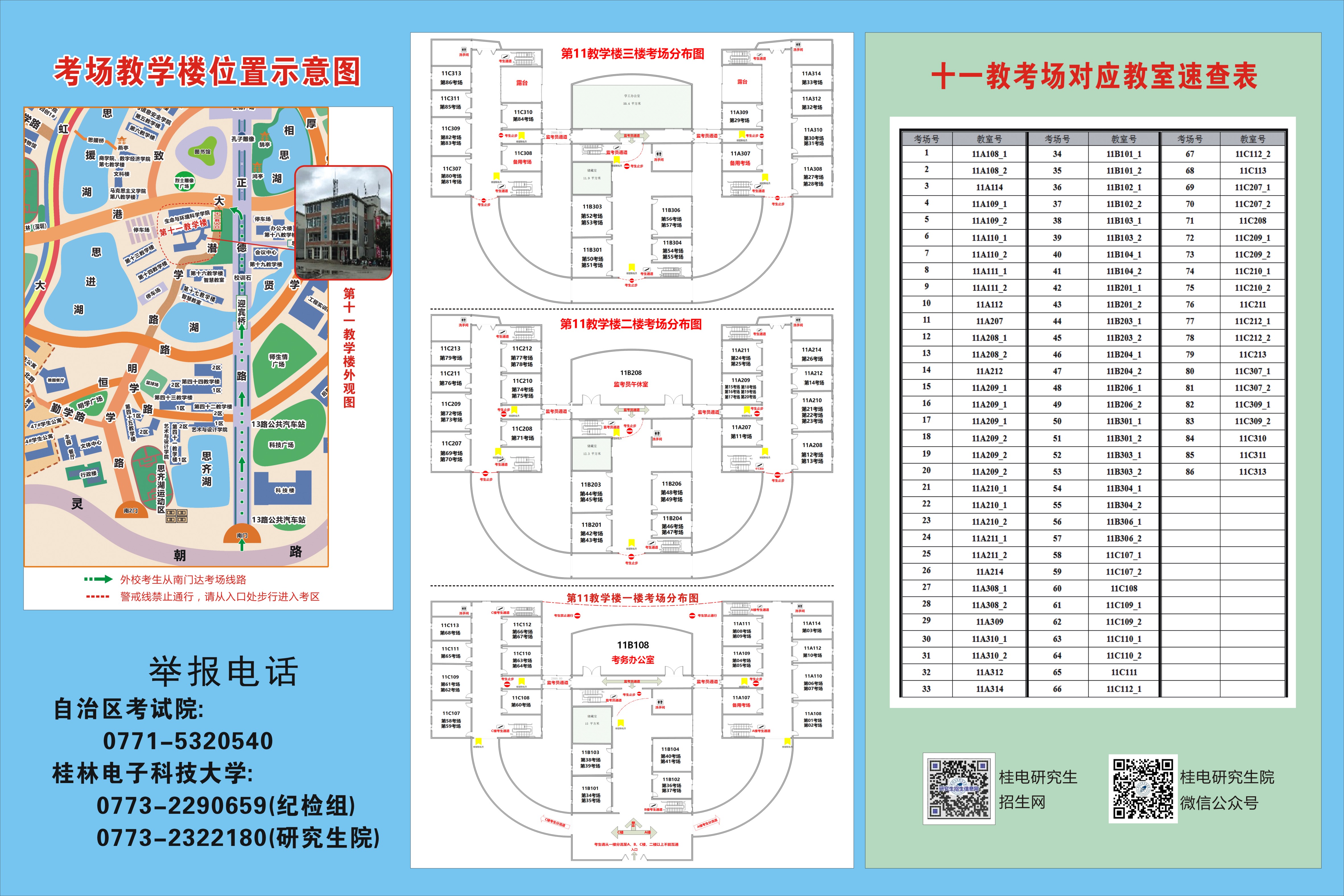 (一)考场安排索引表、考场分布表及考点平面示意图详见附件。11教考生入口为正门,所有考生须由此进入教学楼。赴2、3楼ABC区考场的考生,进入教学楼后,应先进入ABC区域,再通过区域内通道前往对应楼层考场。
