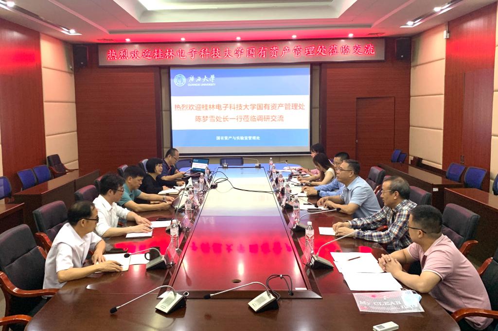 2022年10月29日,国有资产管理处陈梦雪处长带领国有资产管理处一行赴广西大学国有资产与实验室管理处进行国有资产信息化建设与大型仪器共享管理主题调研。