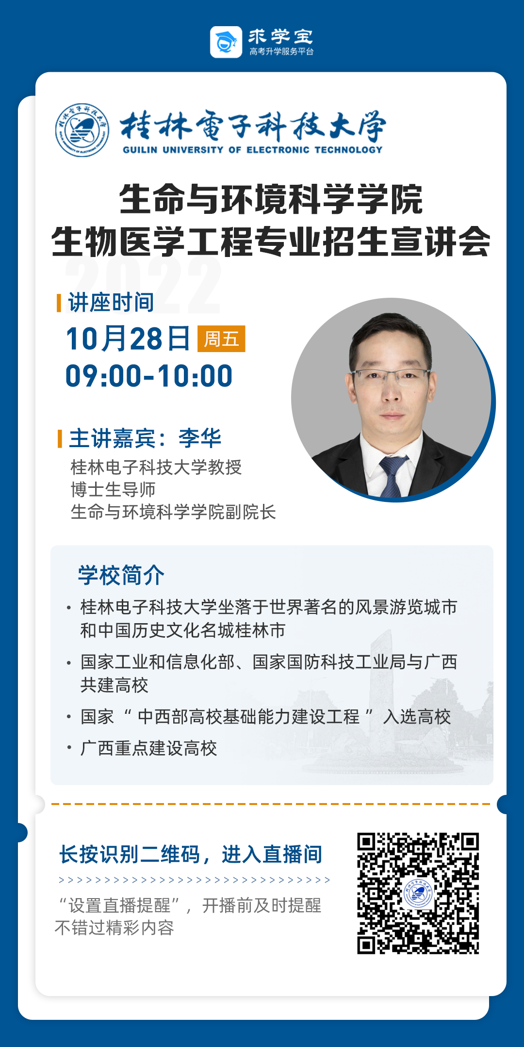2022线上直播丨生命与环境科学学院生物医学工程专业招生宣讲会
