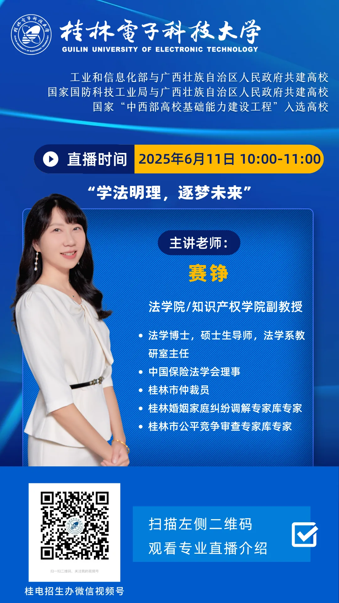 2025年线上直播|“学法明理,逐梦未来”——桂林电子科技大学法学院/知识产权学院法学专业招生宣讲